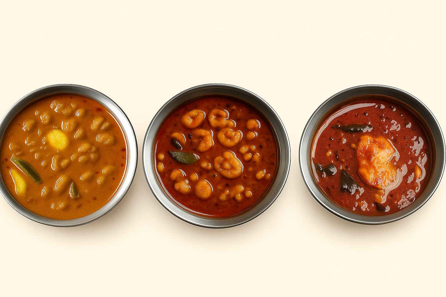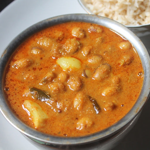 Kolambu is a spicy tangy tamarind based curry that brings authentic home-made taste by adding protein of your choice like fish, shrimp, egg or vegetables like drumstick, potato, field beans, brinjal (eggplant) based on your preference.