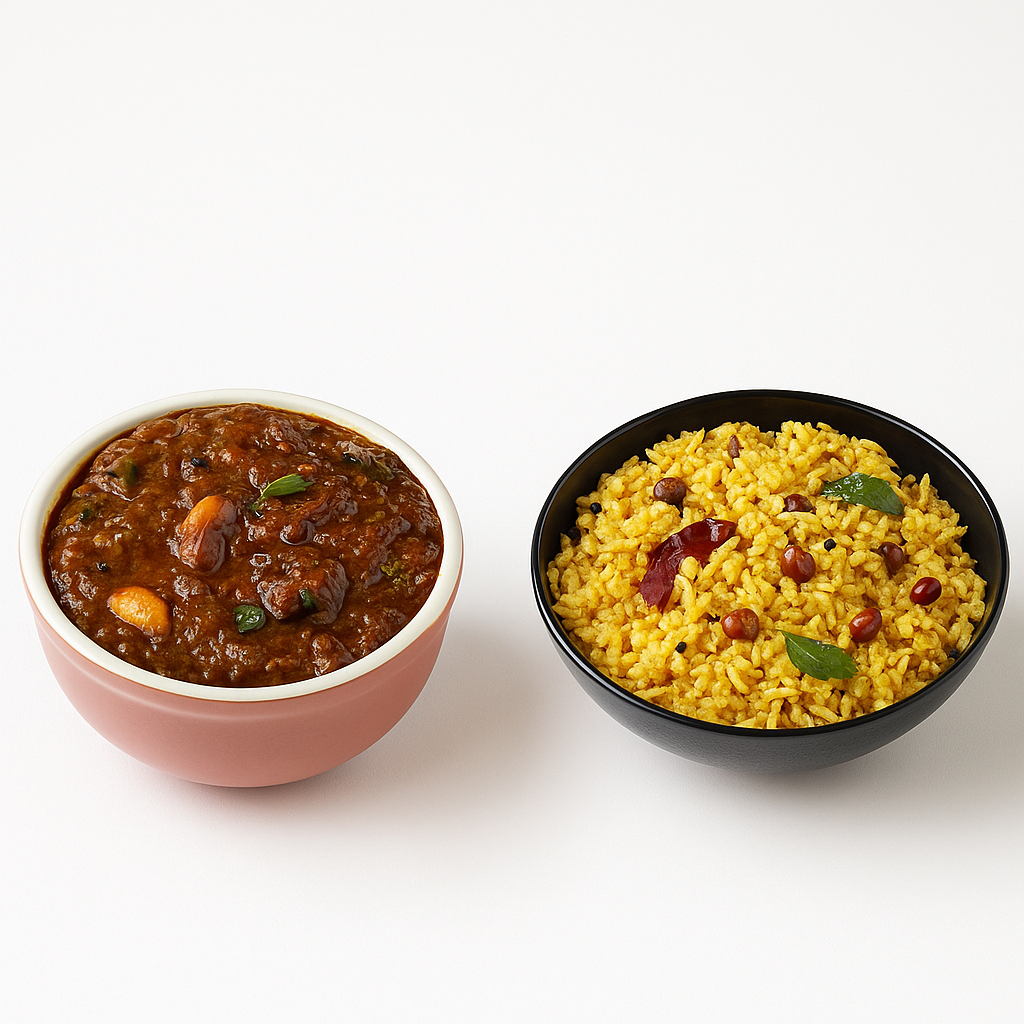 Puliodharai, also known as tamarind rice, is a beloved South Indian dish made with cooked rice flavored with a tangy, spicy tamarind paste. The key ingredients include tamarind pulp, dry red chilies, mustard seeds, curry leaves, peanuts, and a mix of spices like fenugreek and asafoetida. It’s a popular choice for festivals, lunchboxes, and as a travel-friendly meal due to its long shelf life.